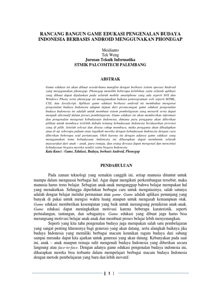 Rancang Bangun Game Edukasi Pengenalan Budaya Indonesia Berbasis Android Pdf