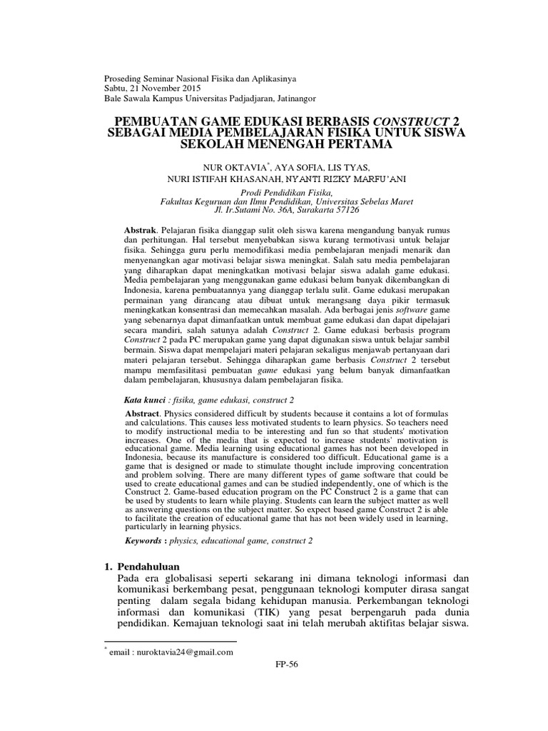 Adoc Tips Pembuatan Game Edukasi Berbasis Construct 2 Sebaga Pdf